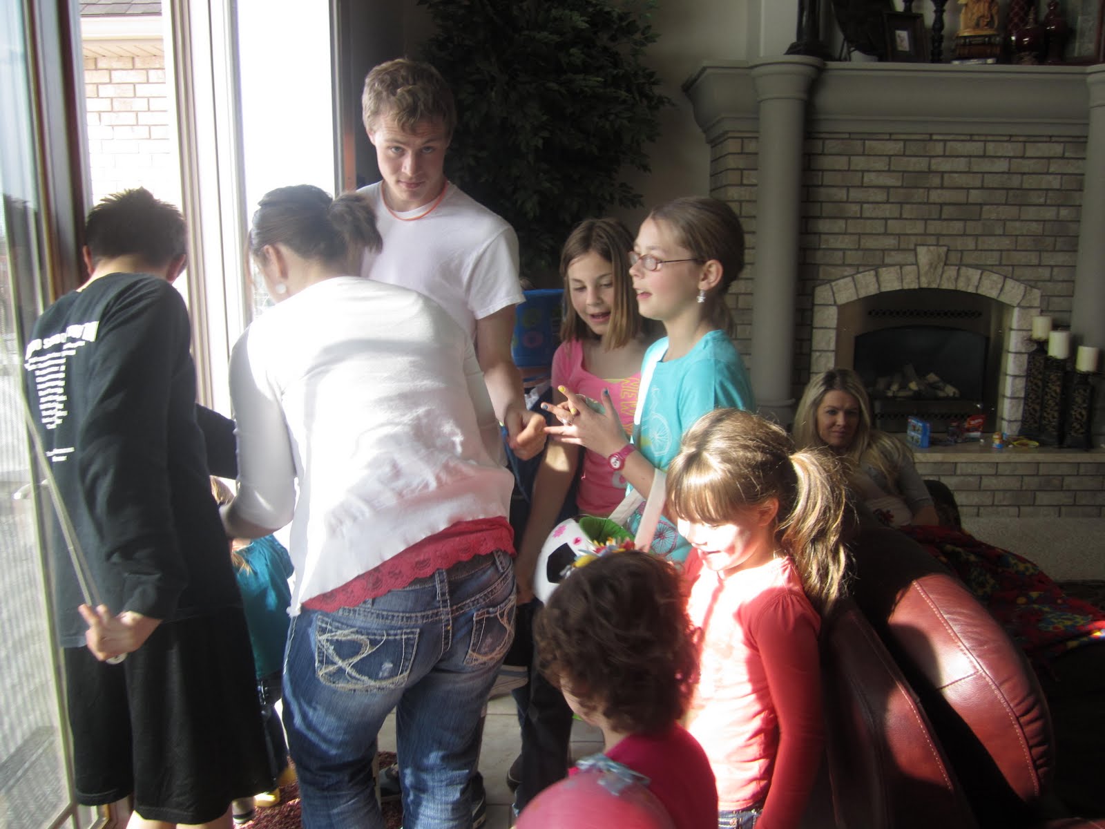 Getting ready for the big Easter egg hunt. The big kids hid the eggs and the little kids went on the hunt. It was lots of fun and the kids got lots of money, candy, and prizes.