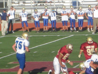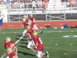 Here are some pictures from the Sky View game. This will be Brax's main rival through high school. He is #95 - bottom center in this picture right after a kick-off.