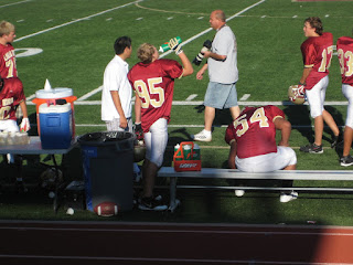 After running, catching, hitting, tackling, and blocking Braxton takes a well-deserved drink.