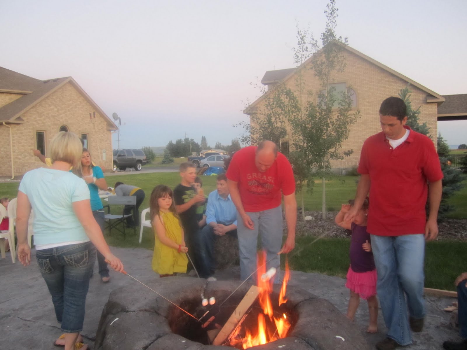 We started our celebration by roasting hot dogs for dinner and s'mores for dessert. It was fun and yummy, even though I cooked my hot dog in the house (because I don't like any black on my hot dog) and I don't like marshmallows so while everyone else eats s'mores, I eat a Hershey bar - or two:)