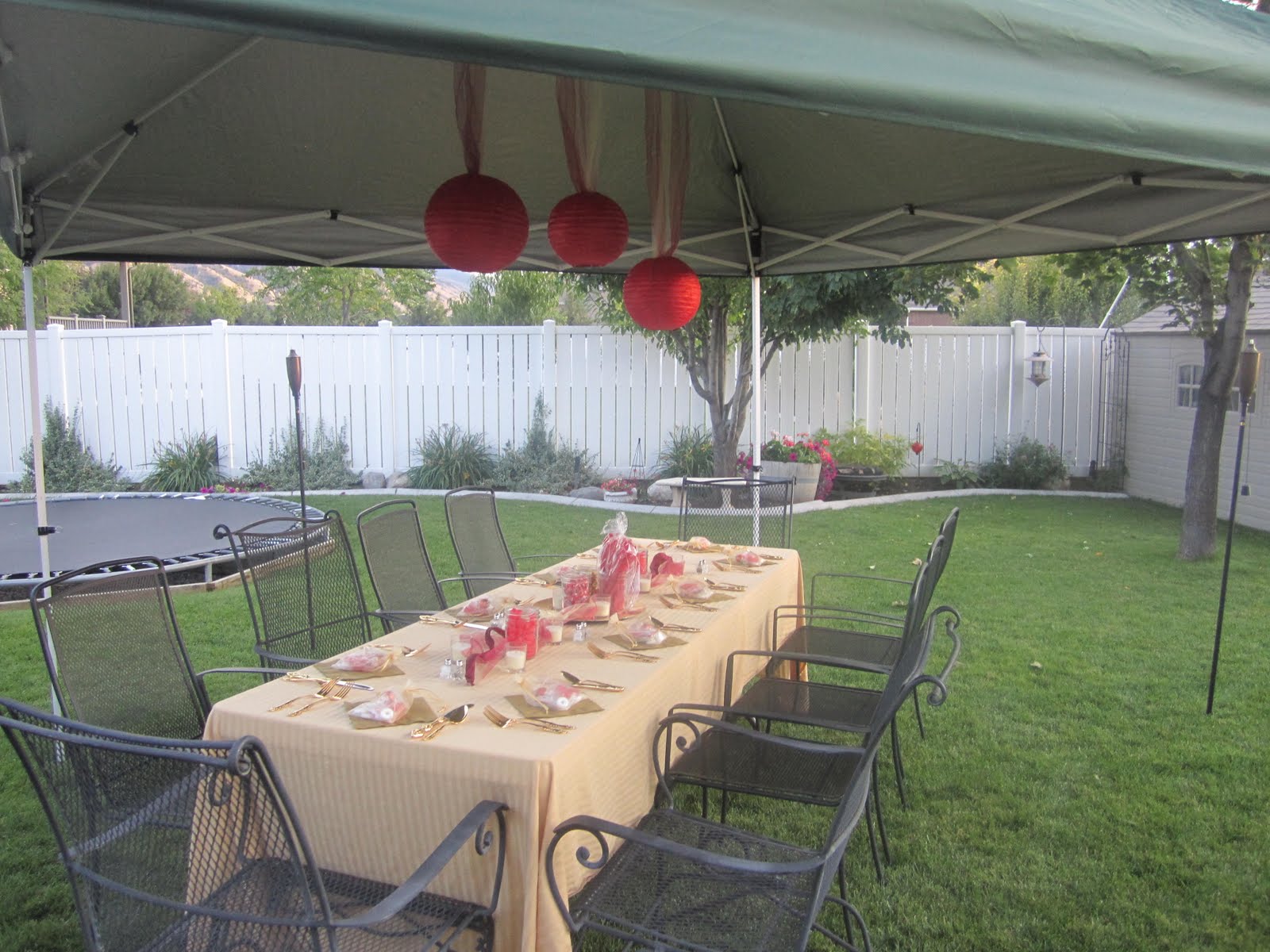 They ate dinner in Ryan's backyard and I was able to go over and help cook and get things ready. Ryan's mom had decorated the table so cute - it was all in crimson and gold (the school colors.)